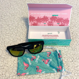 Goodr The brand is fun and quirky and they weave in their cheeky personality with functional information like care instructions. The bag and box are useful for traveling with your new sunglasses.